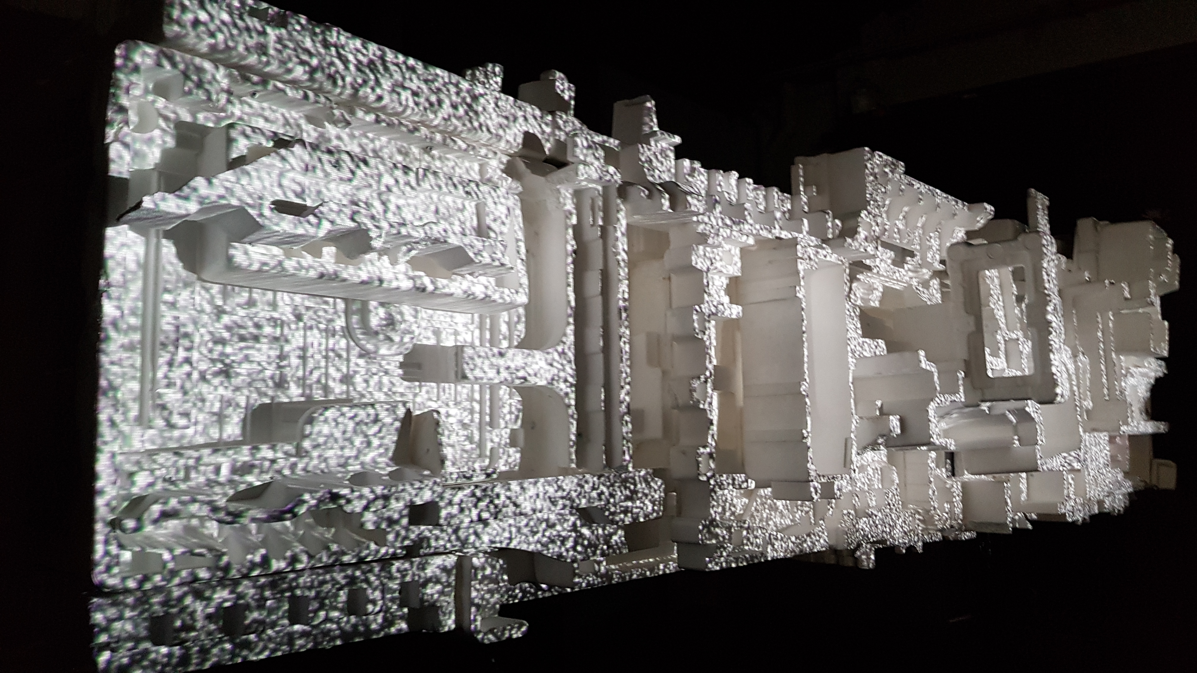 Mapping, projection vidéo sur une sculpture en polystyrène extrudé.Durée de la performance : 21 minutes. minimum.